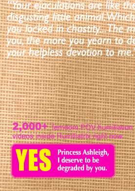 "Whether you're a sissy, a loser, a dork, a reject, a mama's boy, a virgin, or, as I suspect, all of the above, you belong in an emasculating chastity cage. That's the only way you will ever be allowed in the presence of a Goddess like me. You'll wear it because you know you deserve it -- because Goddess Tessa says so..." 8 minutes |